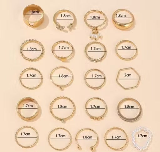 💎 Set of 21 Rings: A perfect combination of plain, textured, and embellished rings to suit every mood and outfit.